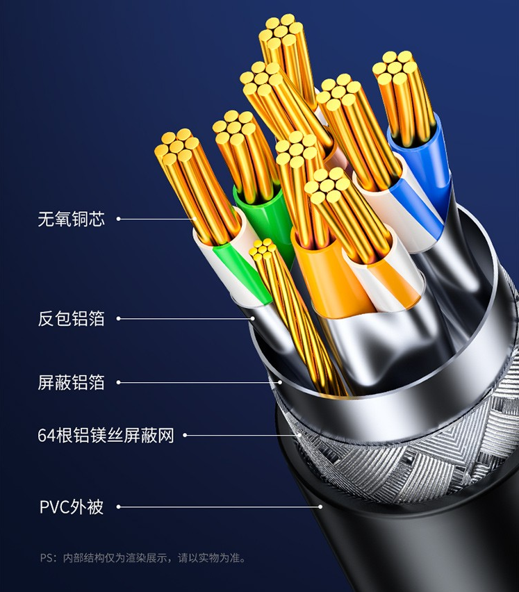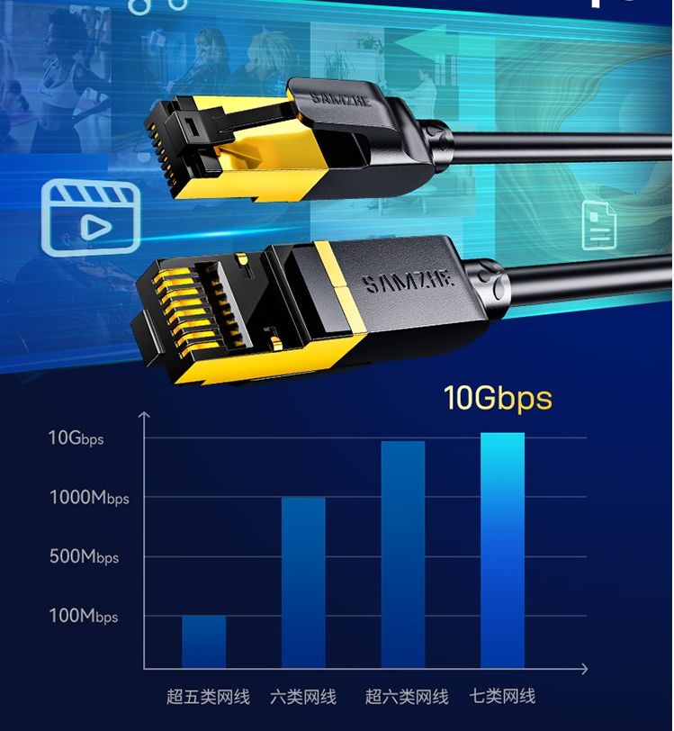 网络连接设备山泽(SAMZHE)工程级万兆七类CAT7纯铜镀金双屏蔽超高速网络跳线黑色20米CAT-720H/根