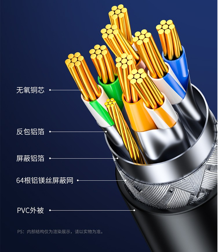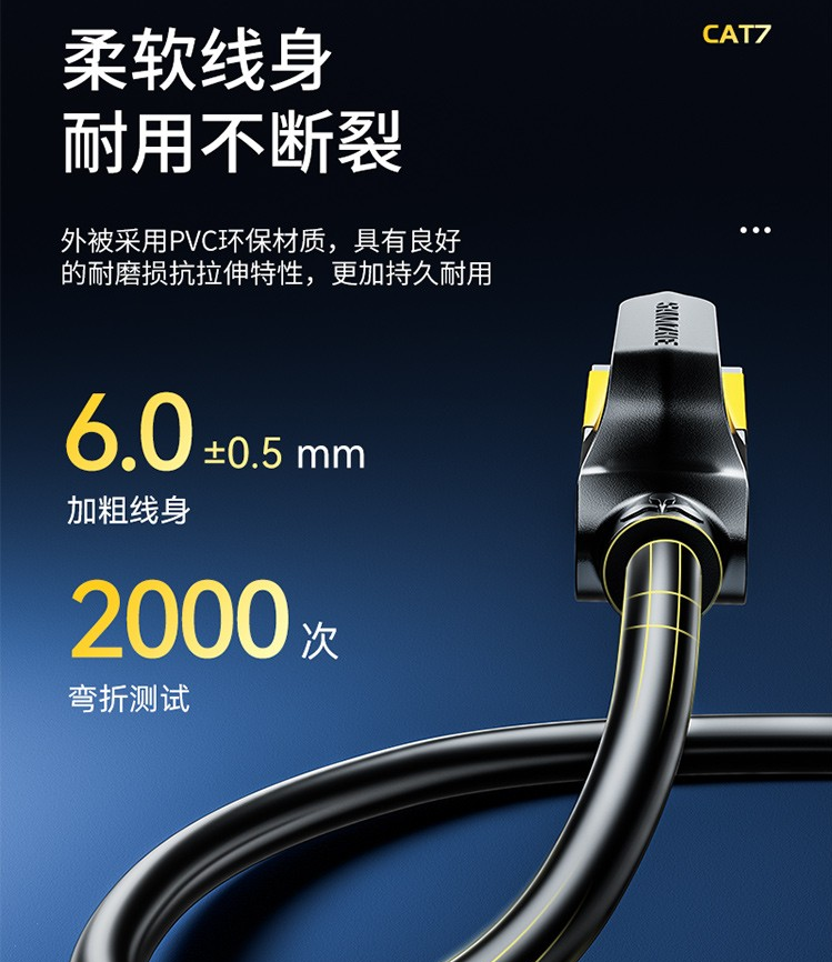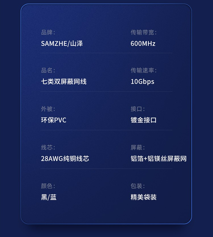 网络连接设备山泽(SAMZHE)工程级万兆圆线七类CAT77类纯铜镀金双屏蔽超高速网络跳线蓝色3米CAT-703L/根