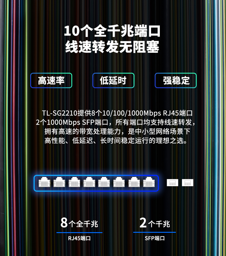 以太网交换机普联/TP-LINK全千兆10口Web网管 云管理交换机 (8个千兆口+2千兆SFP) TL-SG2210/台
