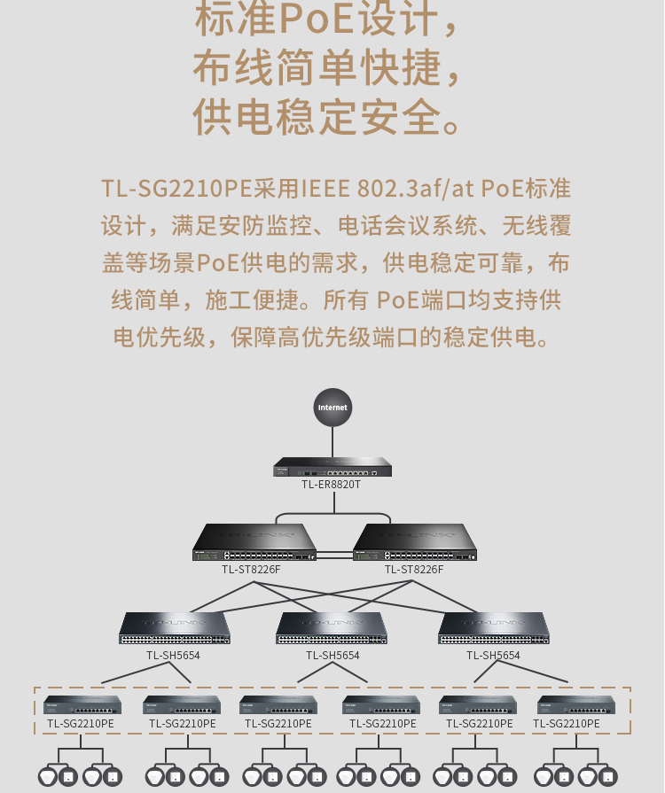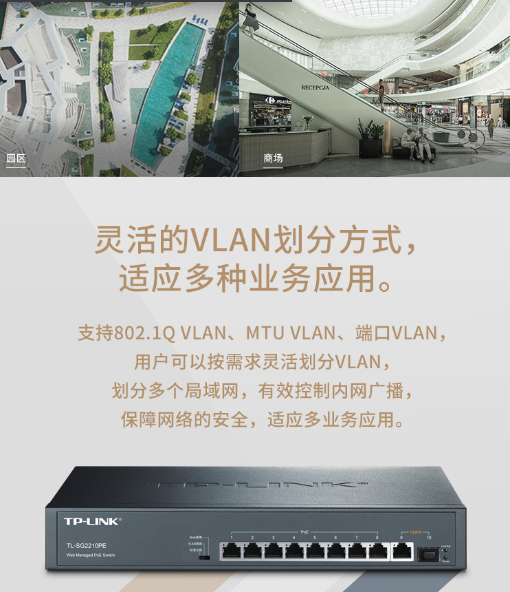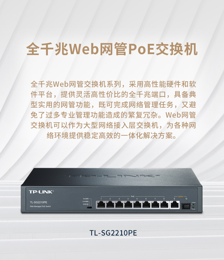 以太网交换机普联/TP-LINK10口全千兆Web网管 云管理PoE交换机 (8PoE口+1千兆口+1千兆SFP) TL-SG2210PE/台