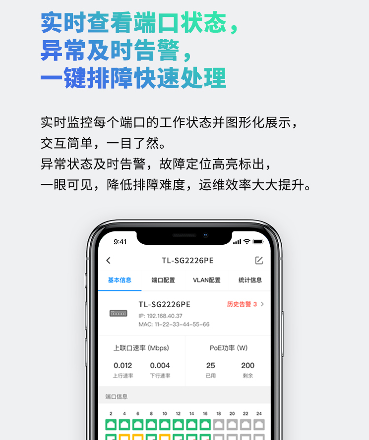 以太网交换机普联/TP-LINK全千兆26口Web网管云管理POE交换机(24PoE口+2千兆SFP)企业级TL-SG2226PE/台