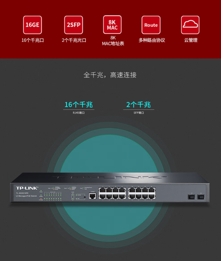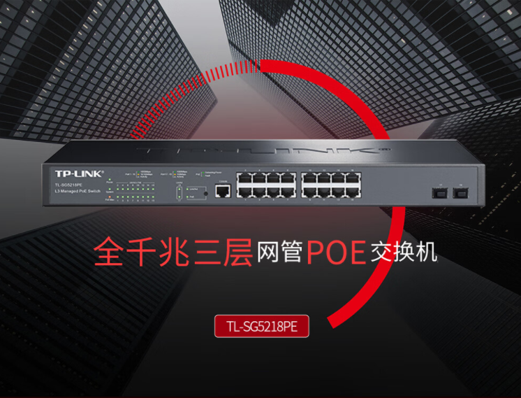 以太网交换机普联/TP-LINK18口可网管2光口16口供电企业级千兆三层PoE交换机TL-SG5218PE/台