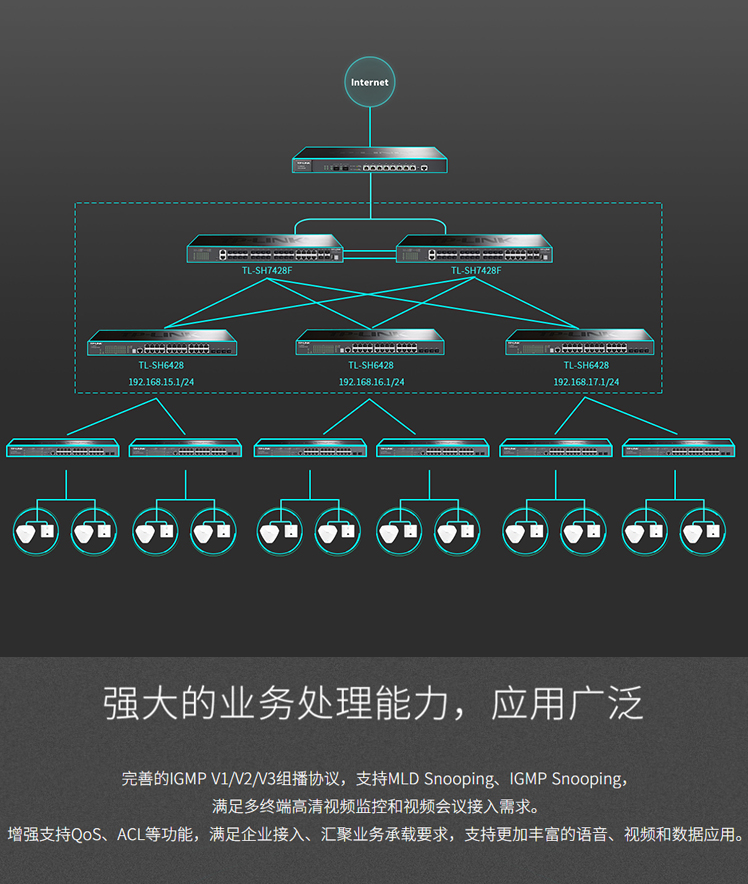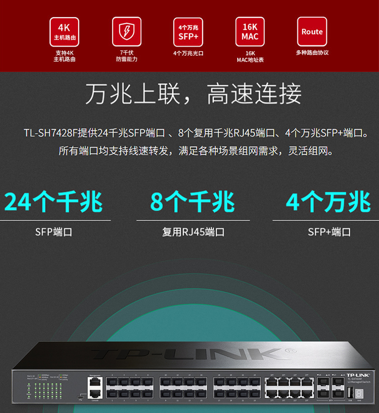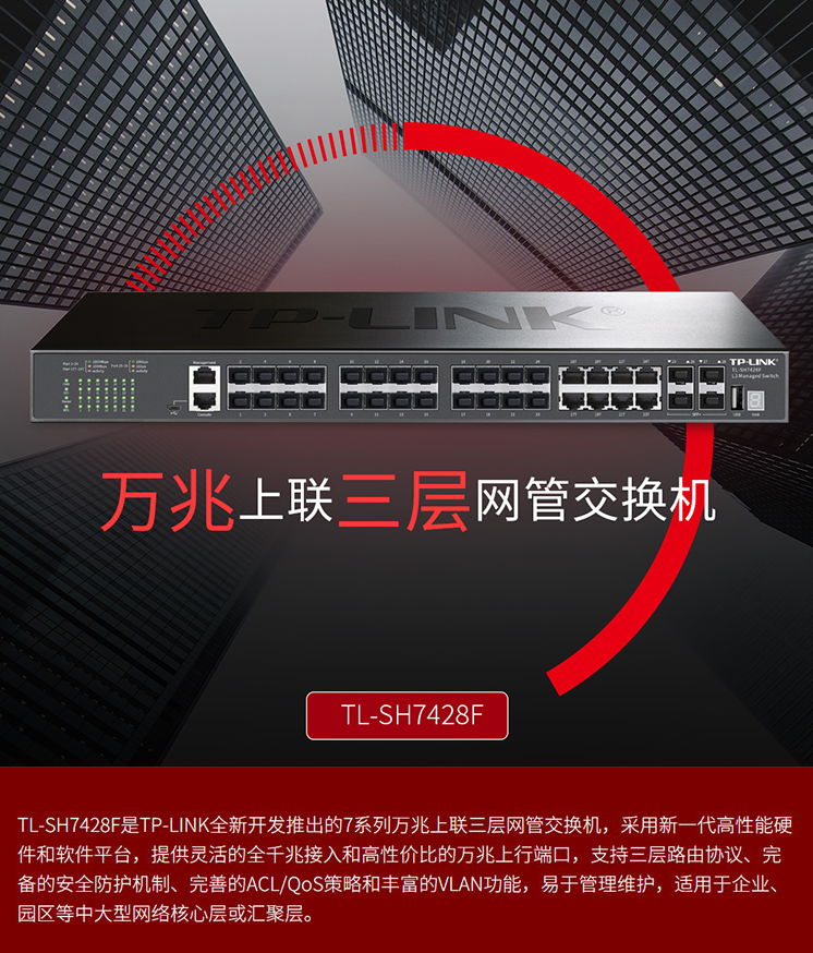 以太网交换机普联/TP-LINK全千兆24口三层网管型交换机IPV6核心层4光口SFP端口汇聚 TL-SH7428F/台