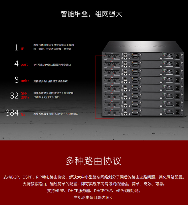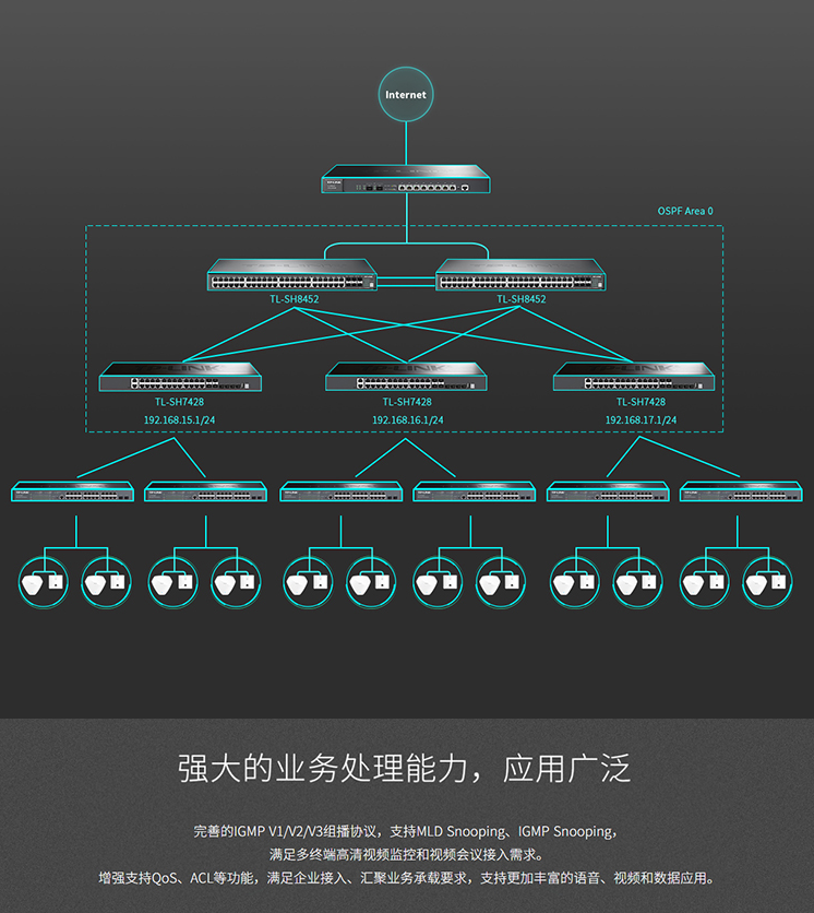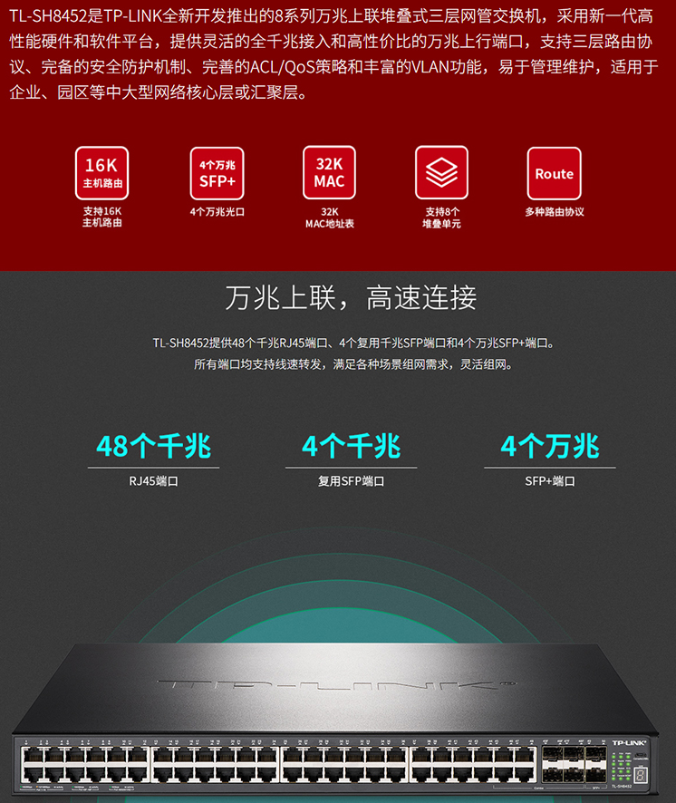 以太网交换机普联/TP-LINK万兆上层堆叠式交换机网管堆叠式三层网管TL-SH8452/台