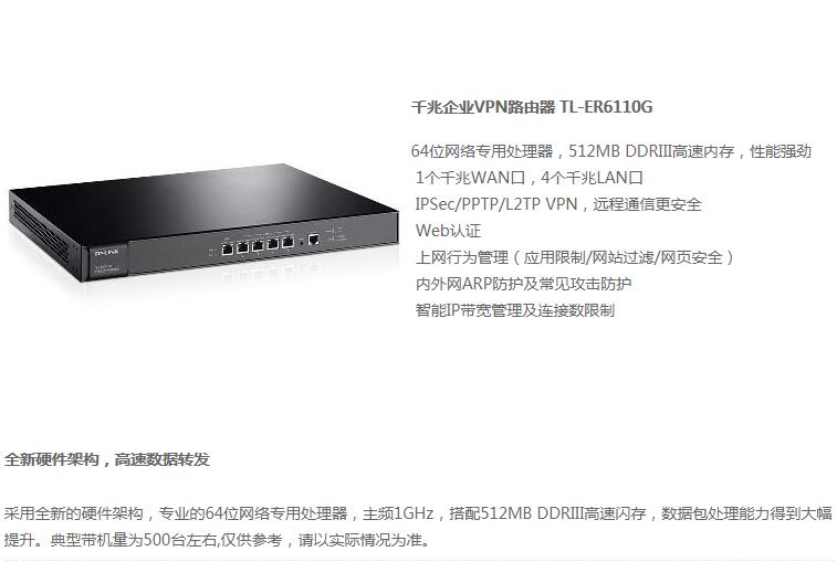 路由器普联/TP-LINK企业级 千兆VPN路由器 防火墙 AP管理TL-ER6110G/台