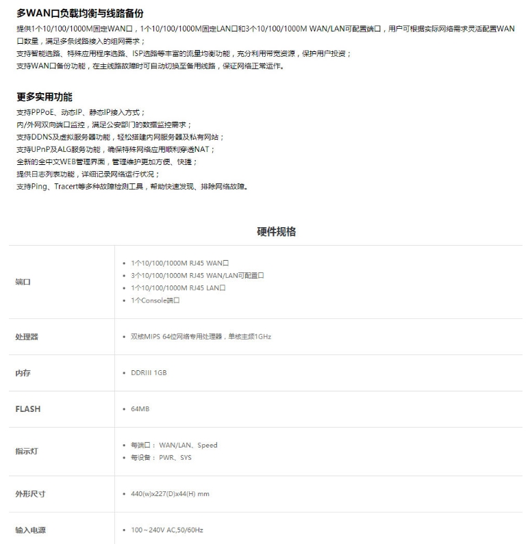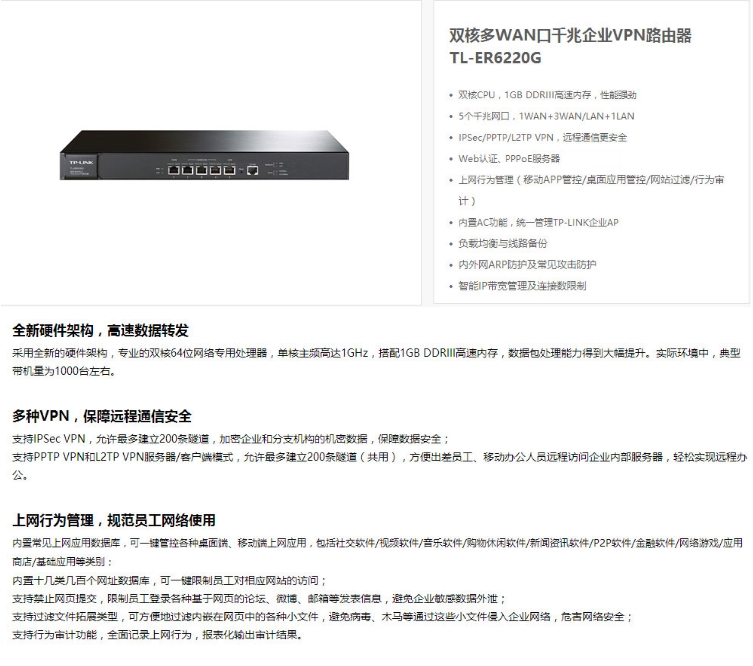 路由器普联/TP-LINK企业级商用核心有线千兆路由器TL-ER6220G/台