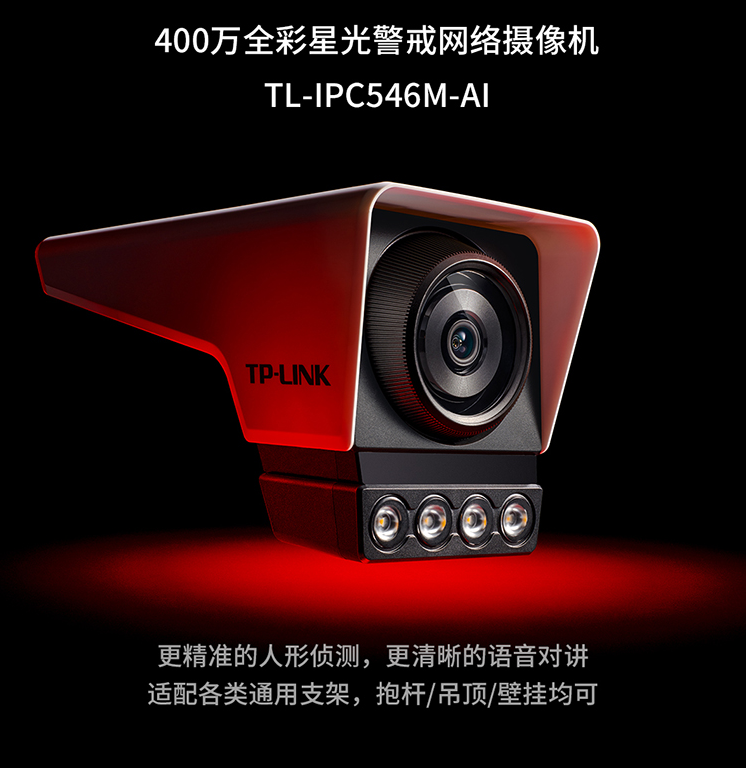监控摄像机普联/TP-LINK400万高清监控摄像头户外监视器TL-IPC546M-AI4/AI6/台