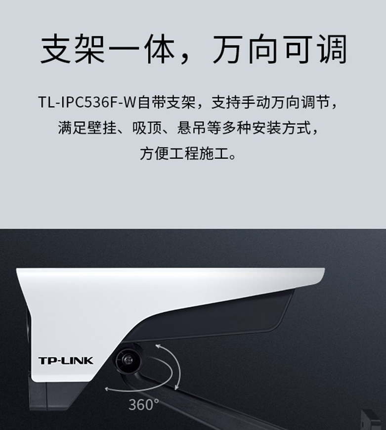 监控摄像机普联/TP-LINK300万像素筒型双光全彩网络摄像机TL-IPC536FP-W8/台