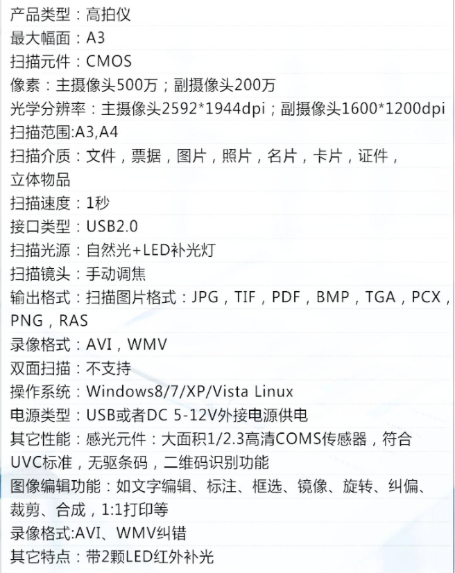 ADF彩色双面扫描速度(A4,200dpi)  :   100