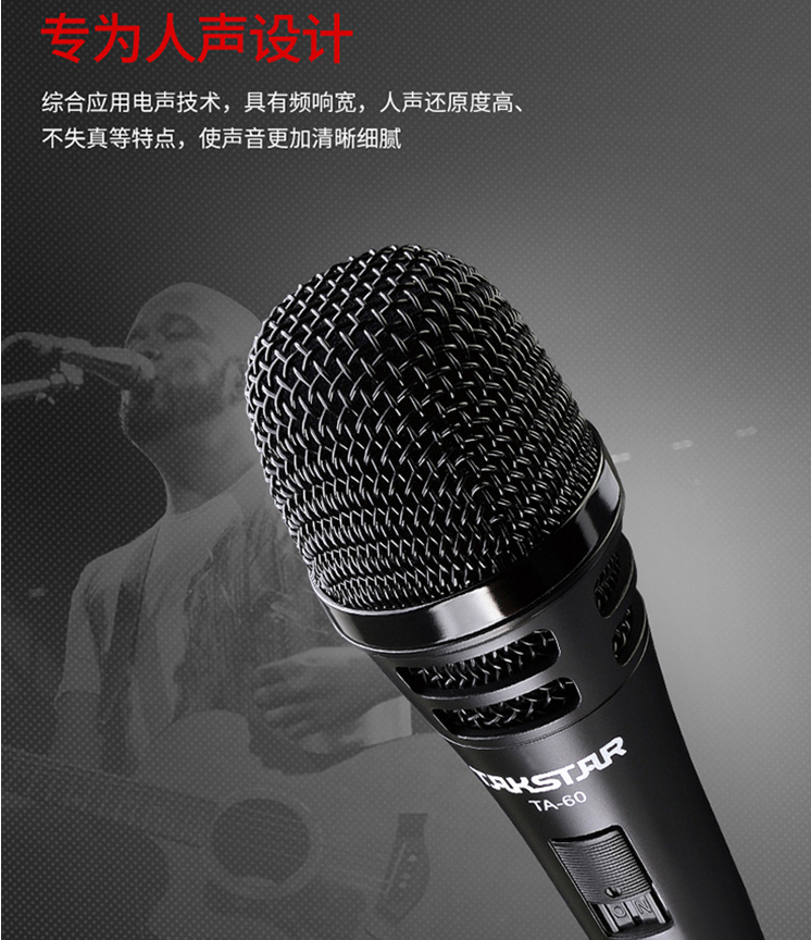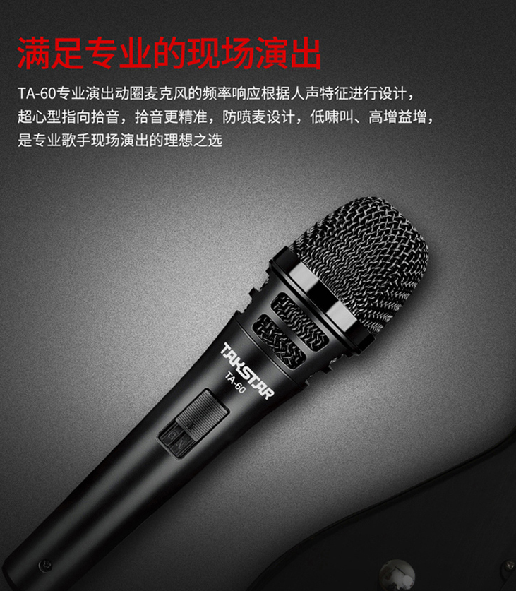 得胜/TAKSTAR有线动圈麦克风 专业演出唱歌话筒黑色TA-60/台