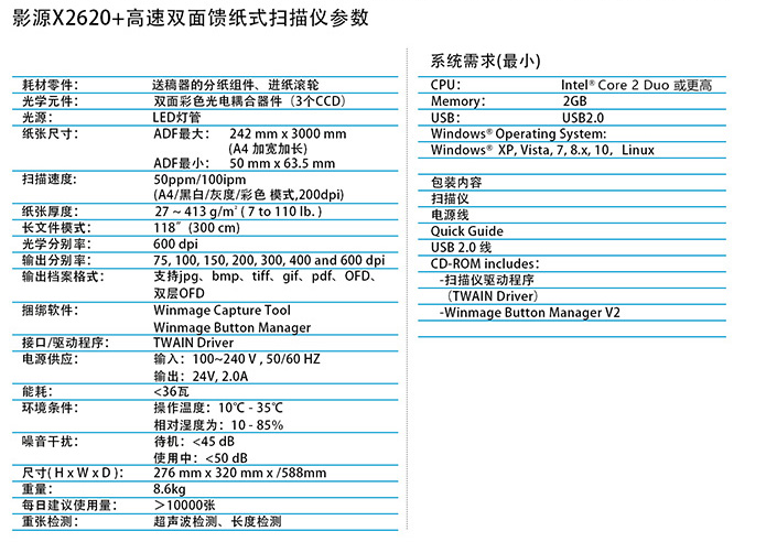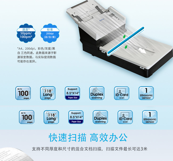 ADF彩色双面扫描速度(A4,200dpi)  :   无