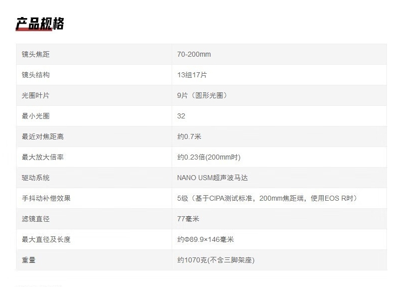 焦距  :   70-200mm