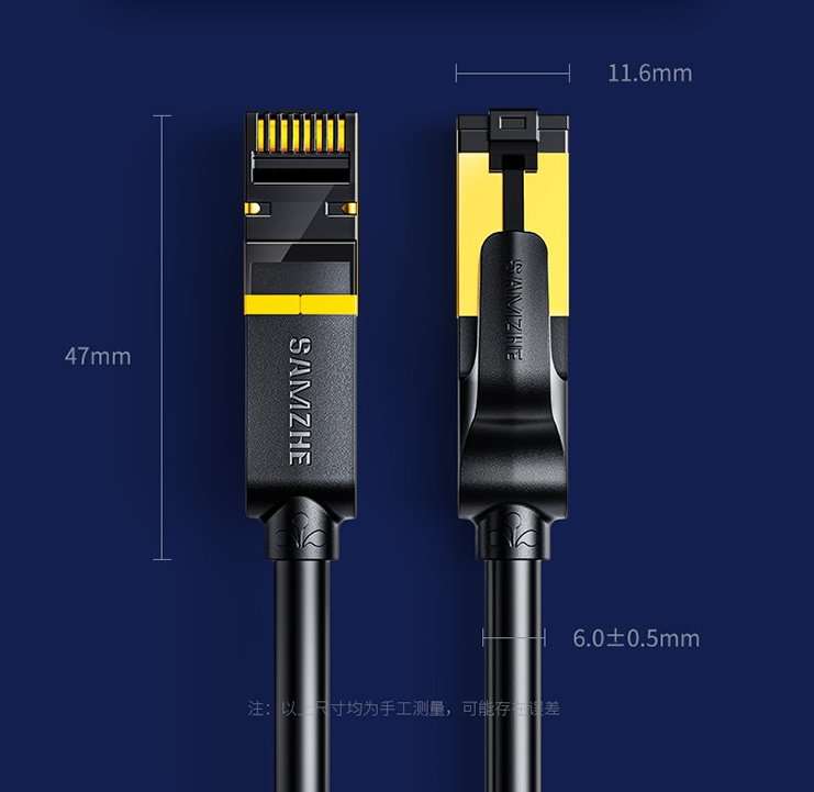 网络连接设备山泽(SAMZHE)工程级万兆圆线七类CAT77类纯铜镀金双屏蔽超高速网络跳线蓝色3米CAT-703L/根