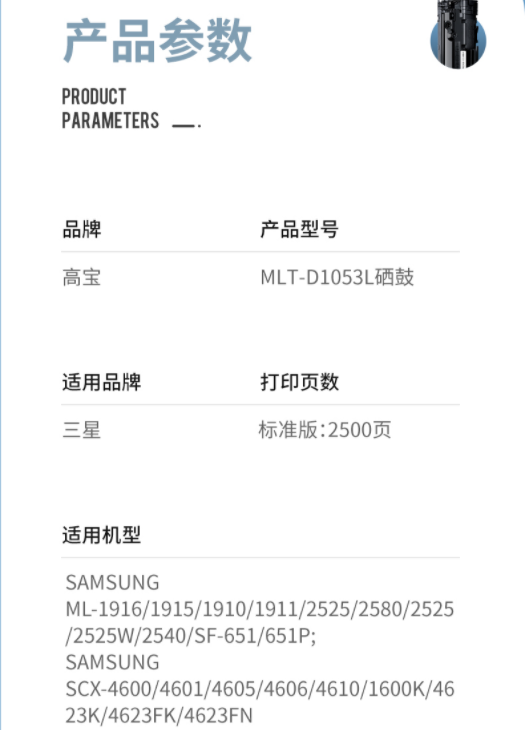 适用机型  :   三星ML-1911 2581 SCX-4601 4623FH SF-651