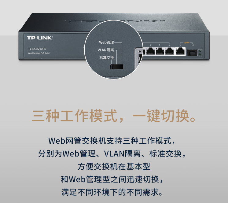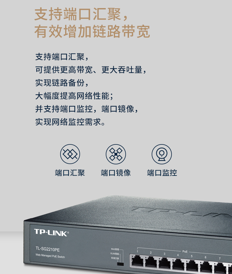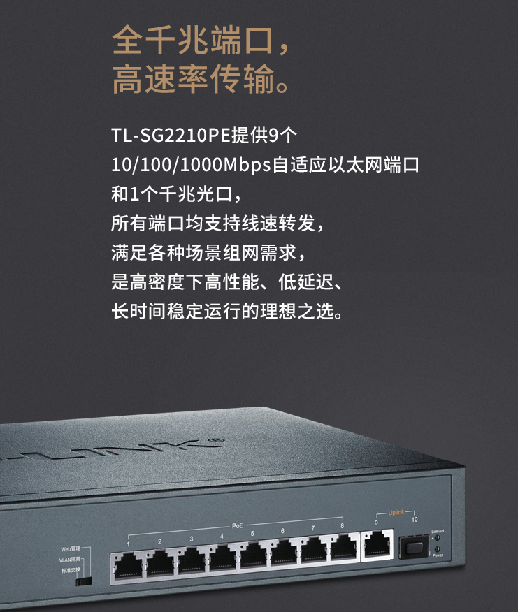 以太网交换机普联/TP-LINK10口全千兆Web网管 云管理PoE交换机 (8PoE口+1千兆口+1千兆SFP) TL-SG2210PE/台