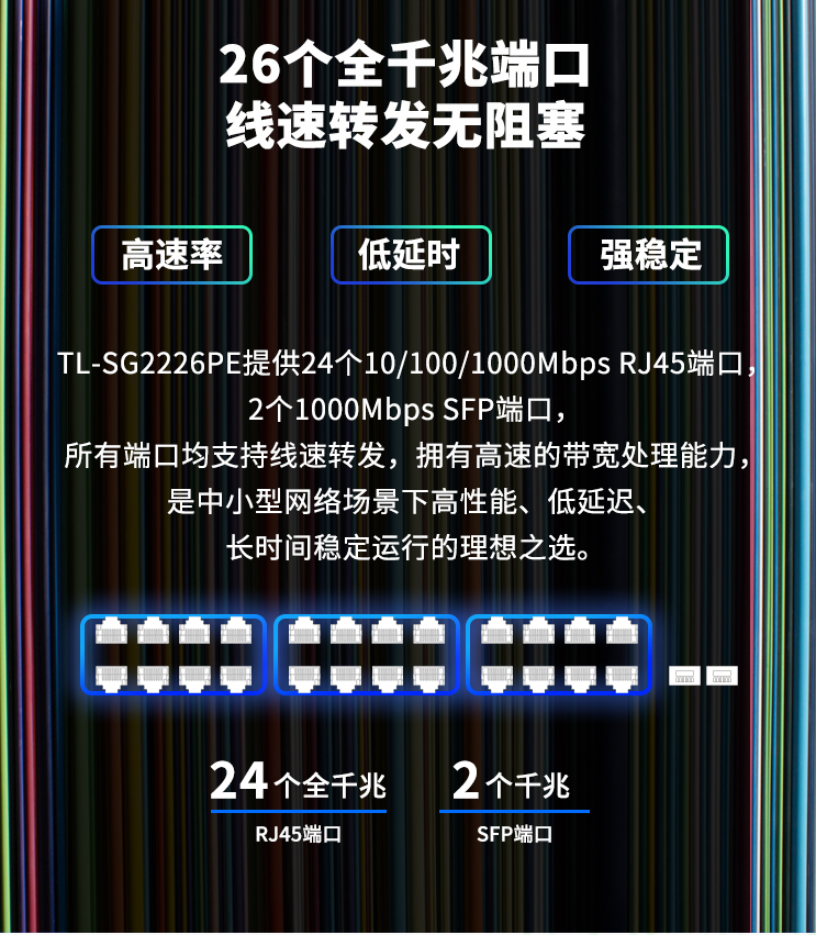 以太网交换机普联/TP-LINK全千兆26口Web网管云管理POE交换机(24PoE口+2千兆SFP)企业级TL-SG2226PE/台
