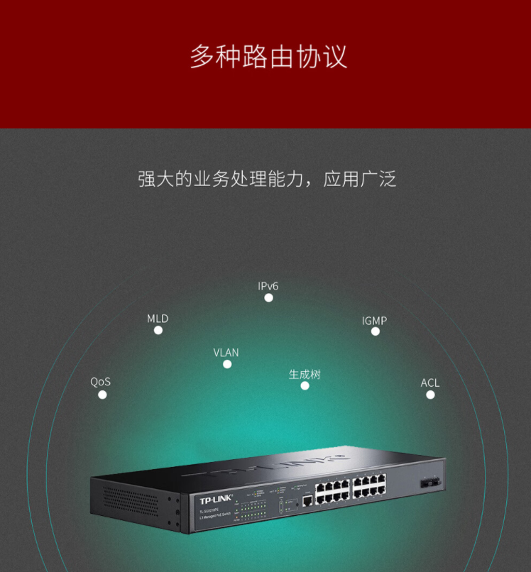 以太网交换机普联/TP-LINK18口可网管2光口16口供电企业级千兆三层PoE交换机TL-SG5218PE/台