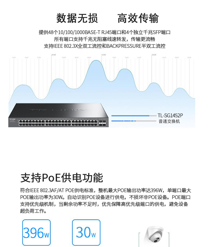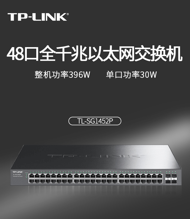 以太网交换机普联/TP-LINK52口全千兆POE交换机48电口4光口企业级接入层交换机TL-SG1452P/台