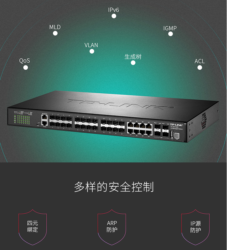 以太网交换机普联/TP-LINK全千兆24口三层网管型交换机IPV6核心层4光口SFP端口汇聚 TL-SH7428F/台