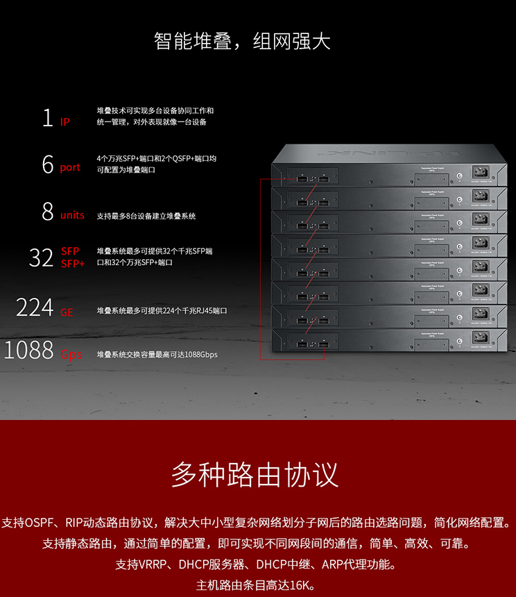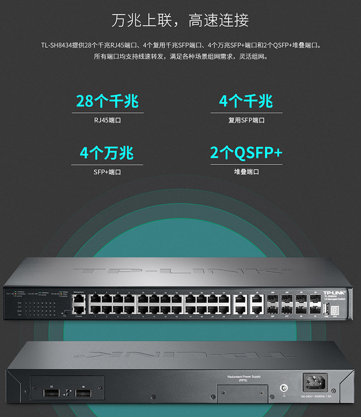 以太网交换机普联/TP-LINK28千兆网口4光口机架式万兆上联堆叠式三层网管交换机TL-SH8434/台