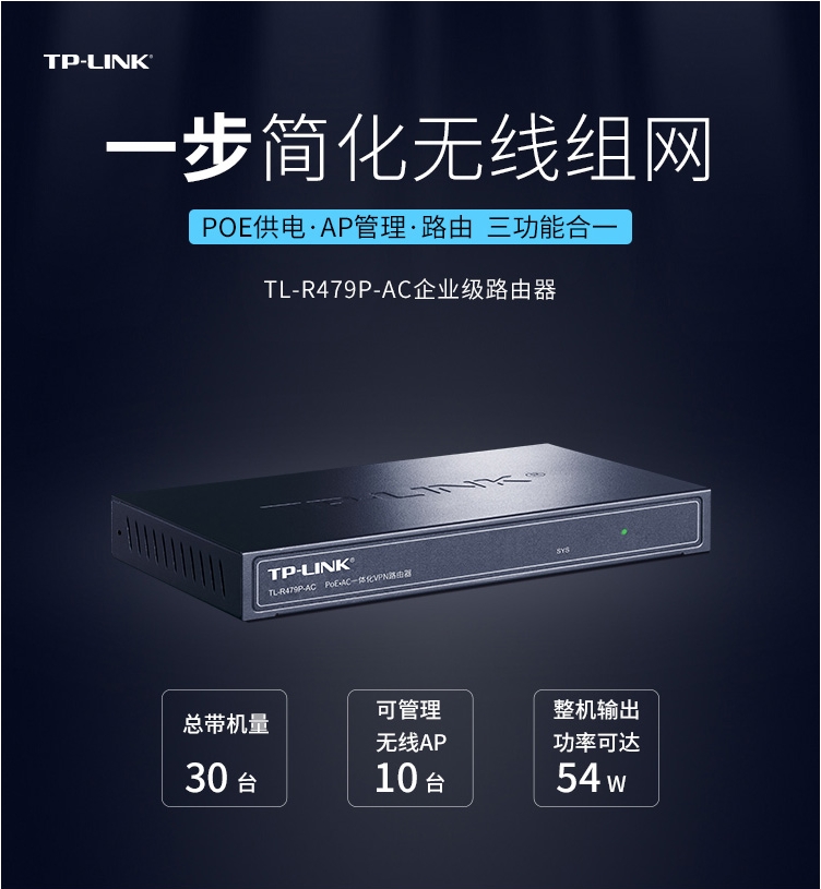 路由器普联/TP-LINK企业级VPN路由器 8口PoE供电/AP管理 PoE供电TL-R479P-AC/台