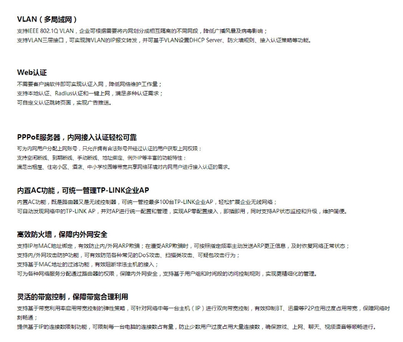 路由器普联/TP-LINK企业级商用核心有线千兆路由器TL-ER6220G/台