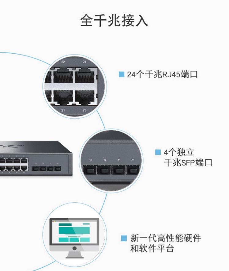 以太网交换机普联/TP-LINK4口千兆企业级商用核心网管交换机TL-SG3428/台