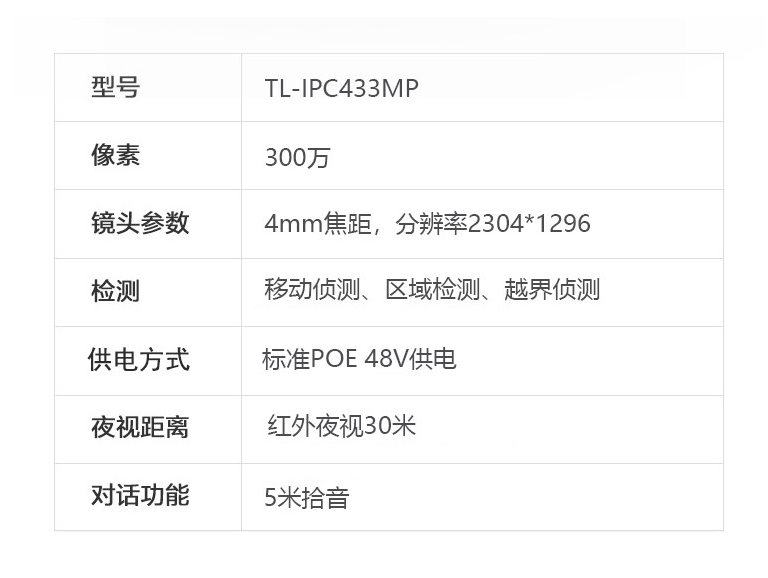 监控摄像机普联/TP-LINKPOE供电摄像头市酒店商铺室内监控器TL-IPC433MP/台