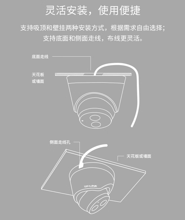 监控摄像机普联/TP-LINK红外夜视拾音半球 有线监控 高清夜视TL-IPC433HSP/台