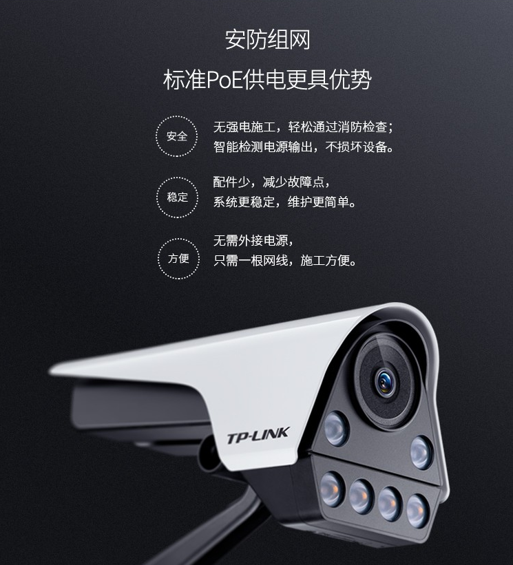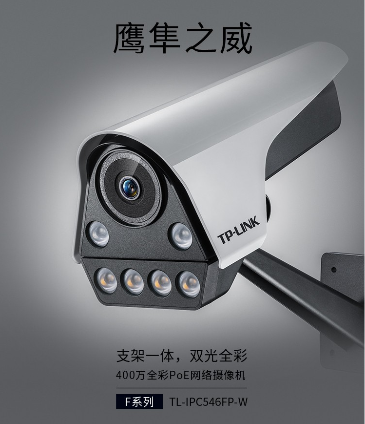 监控摄像机普联/TP-LINK400万PoE室外防水防尘双光全彩拾音网络摄像机TL-IPC546FP-W4/W6/台