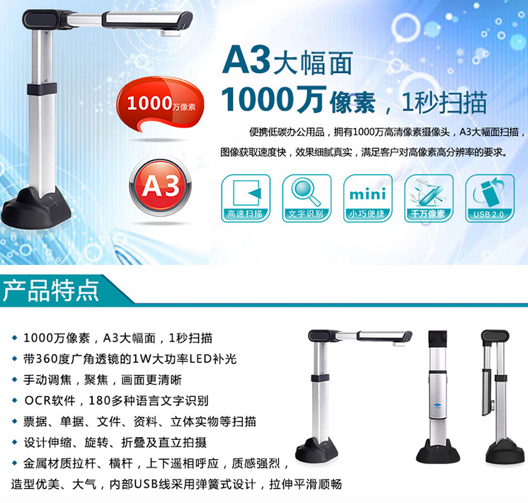 像素(高拍仪)  :   1000W