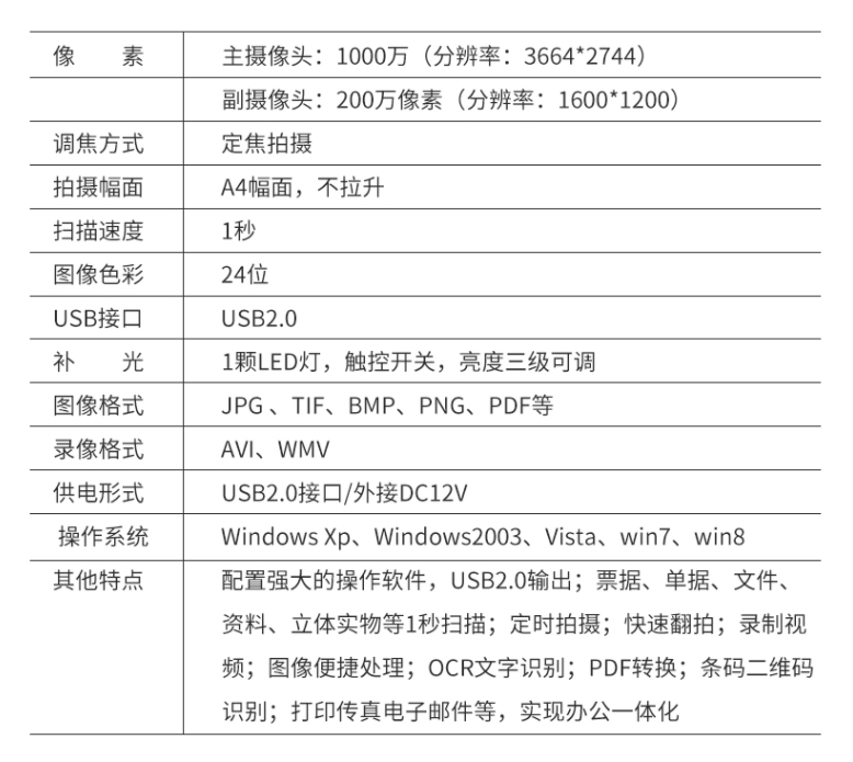 像素(高拍仪)  :   1000W