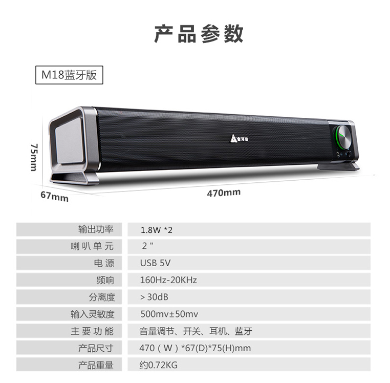 金河田/Goldenfield电脑音箱 笔记本台式便携 多媒体低音炮黑色标准版M18/台