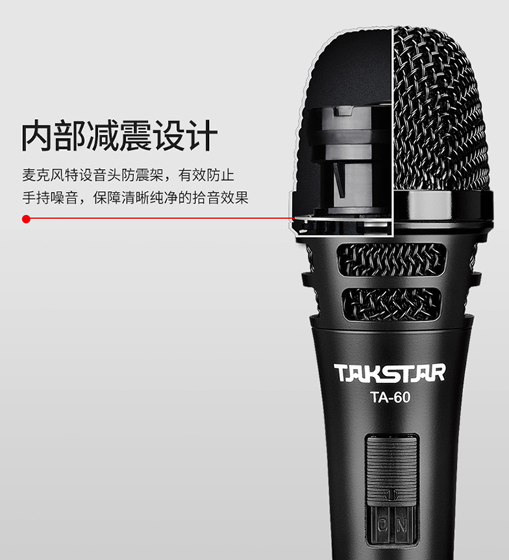 得胜/TAKSTAR有线动圈麦克风 专业演出唱歌话筒黑色TA-60/台