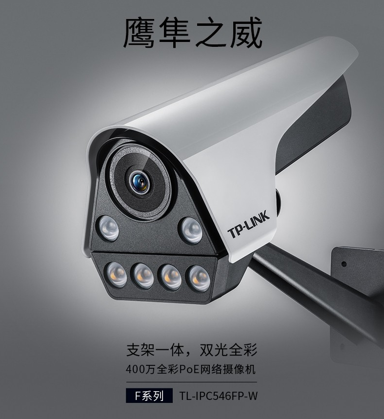监控摄像机普联/TP-LINK400万像素日夜全彩移动侦测监视器TL-IPC546F-W12/台
