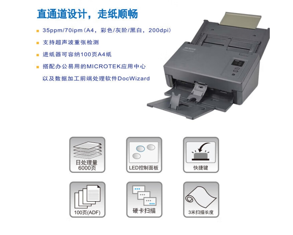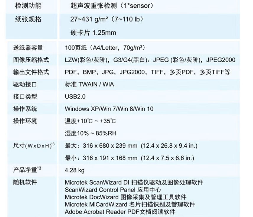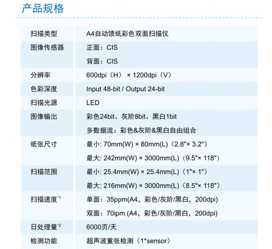 ADF彩色双面扫描速度(A4,200dpi)  :   无