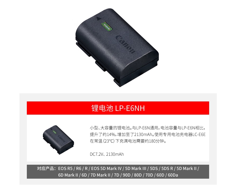 适用机型  :   适用佳能R5 R6 5D4 6D2 90D 80d